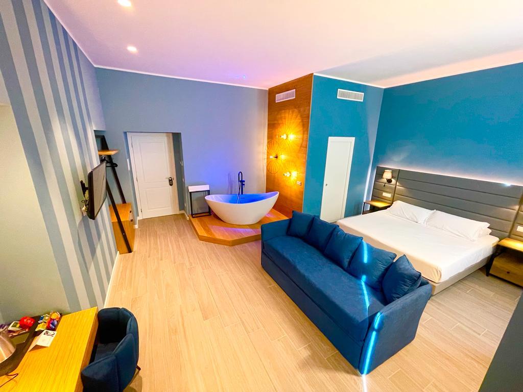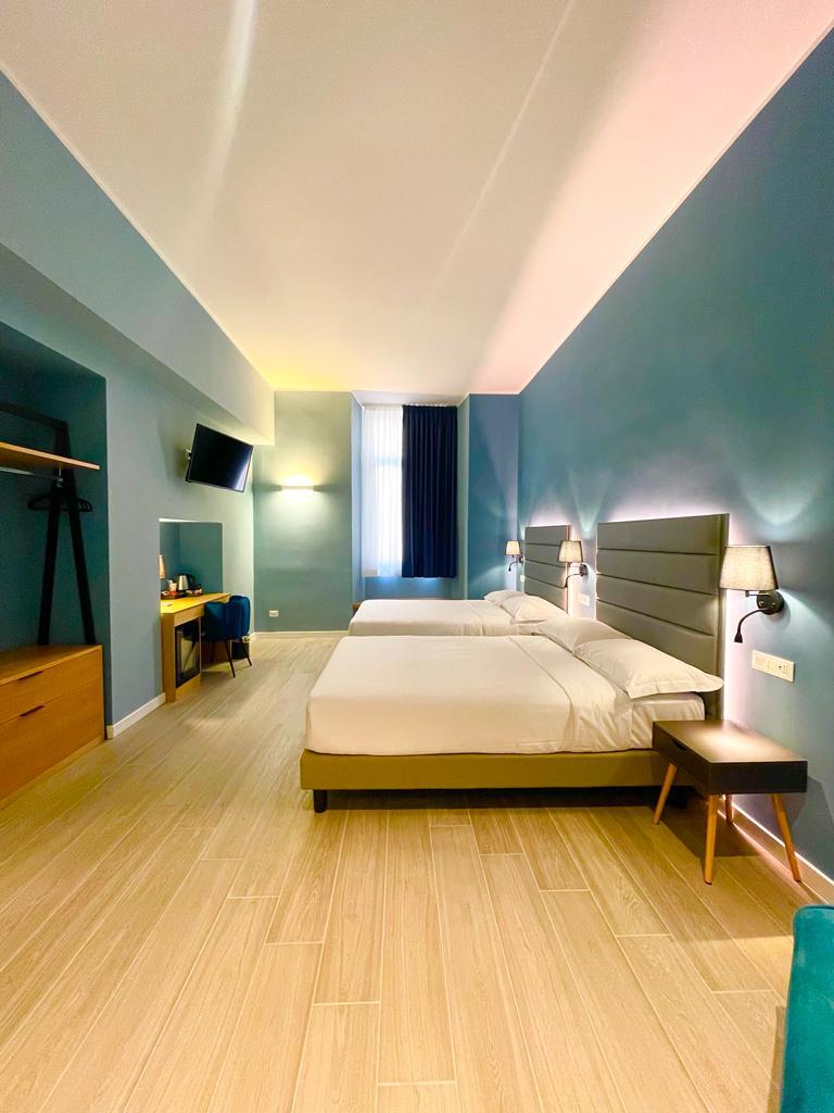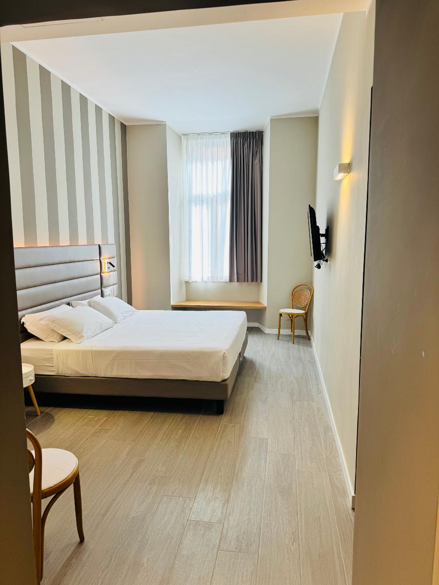 New rooms with modern furnishings, offering large and comfortable beds with carefully selected mattresses, perfect for ensuring a good night’s sleep. Equipped with all comforts: air conditioning, Wi-Fi connection, elevator, and cleaning service.